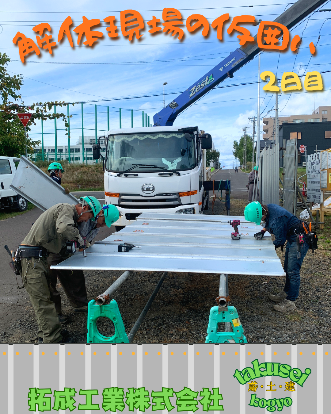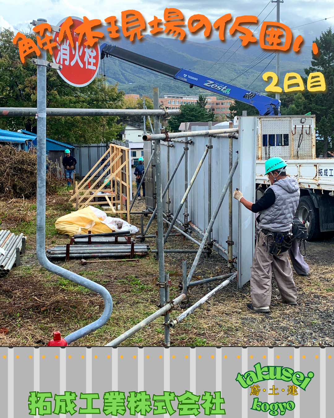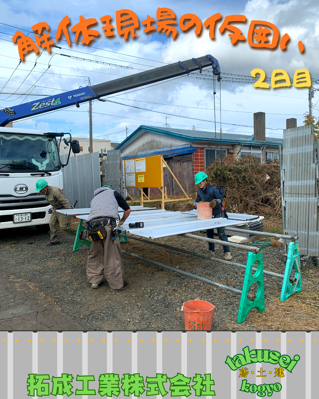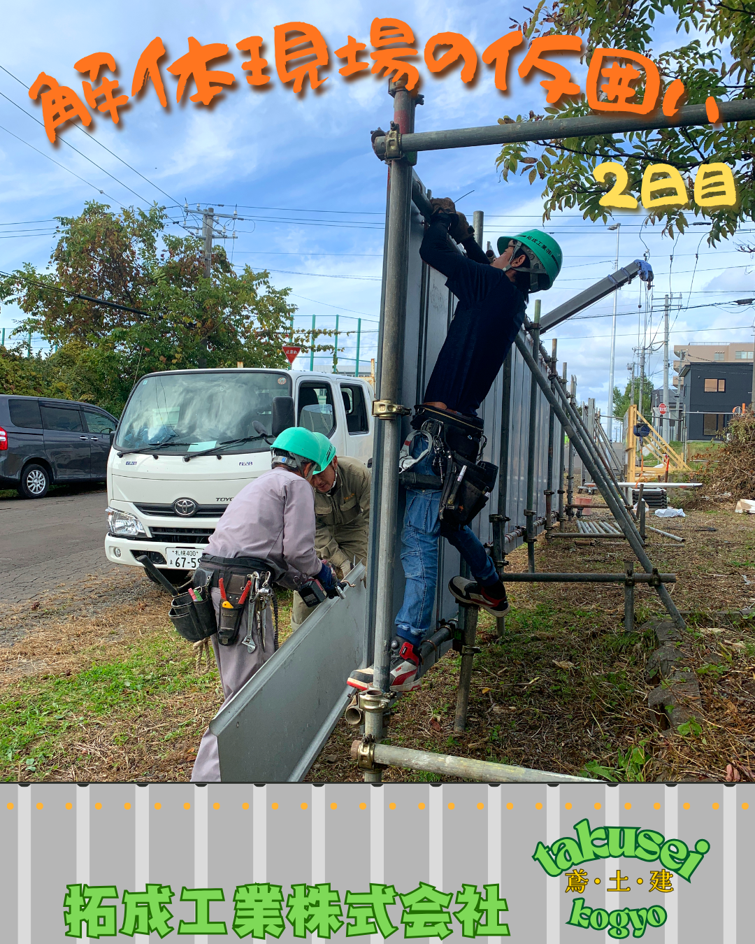 高台の解体現場仮囲い工事 2025年10月8日 最終更新日時 : 2025年10月8日 admin 解体現場の仮囲いを行いました 2025/10/07 解体現場の仮囲い2日目、 今日も安全第一で、着実に作業が進んでいます。 今回は万能板を使用した仮囲いで、軽量かつ単管へ引掛けるだけと作業もシンプルなため、スムーズに進んでいきます。ただし❗素人ではここまでスピーディーに設置できません! 単管の組み方・万能板の掛け方・水平垂直の確認などなど。豊富な経験と確かな技術plus細やかな確認によってスムーズな施工が施されるのです! 現場の皆さんの丁寧な仕事とチームワークに感謝👏 拓成工業株式会社 1日目 2日目